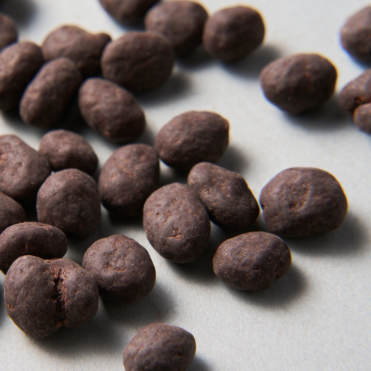 エチオピア産のコーヒー豆を、バーボンで香りづけしたインフュージョンコーヒー豆に、ガーナ70%を3回コーティング。フルーティーな甘みと、バーボンの余韻がほのかに感じられるリッチな豆チョコです。
