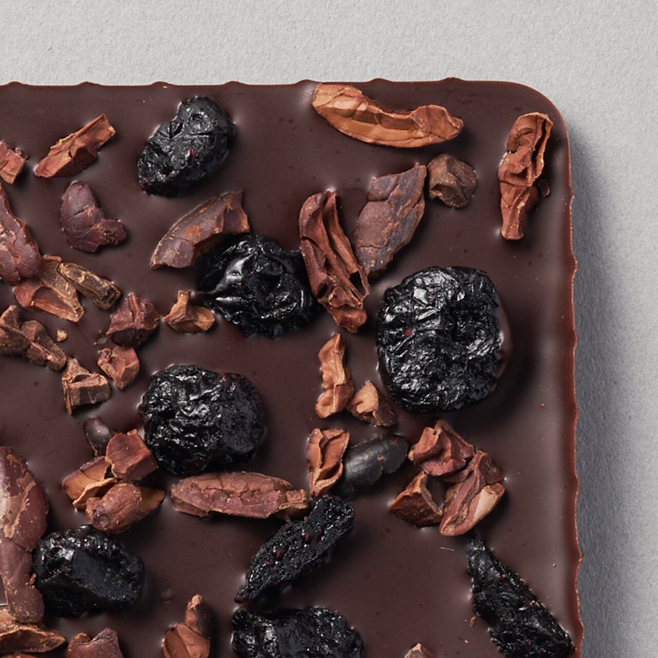 インドネシアカカオの酸味をブルーベリーの甘さが引き立てながら、カカオを焙煎して細かく砕いた粗めのカカオニブの食感も楽しめます。大人っぽく上品で落ち着きのある酸っぱさがほのかに広がるチョコレート。